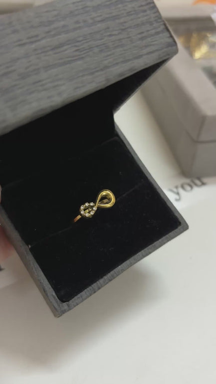This elegant ring is crafted from high-quality stainless steel with 18K gold plating, ensuring durability and long-lasting shine. It features an anti-tarnish finish that helps maintain its beauty over time. Made with hypoallergenic and skin-friendly material, it is safe for sensitive skin and comfortable for daily wear. Lightweight and stylish, this ring is perfect for everyday elegance as well as special occasions, adding a touch of charm to any look.